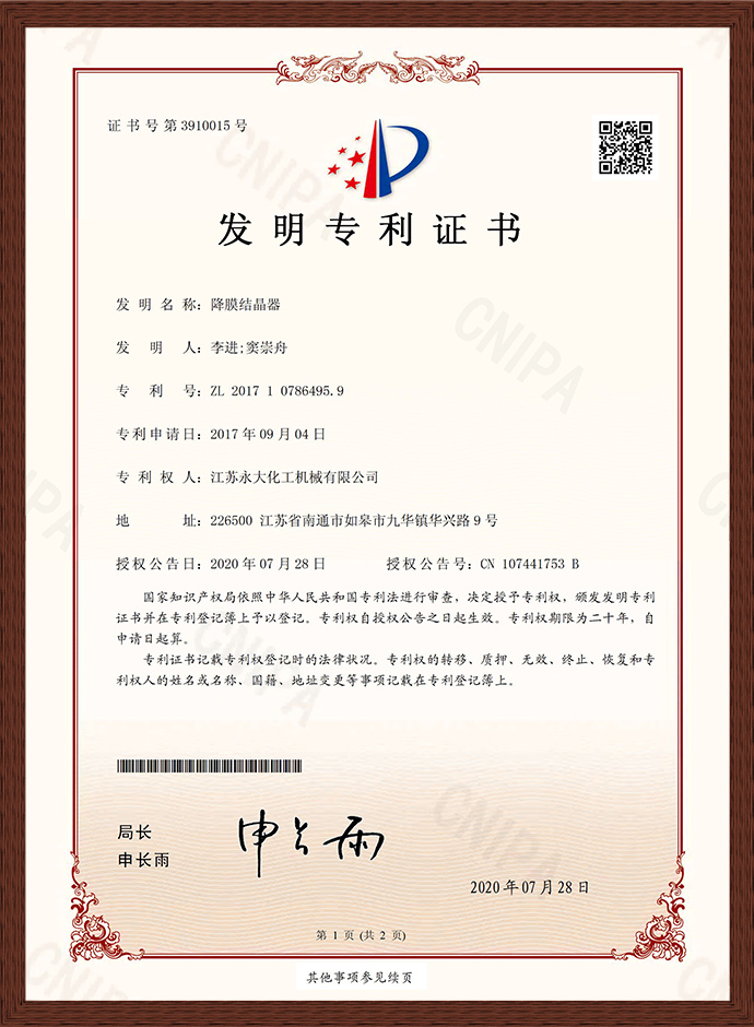降膜結(jié)晶器發(fā)明專利